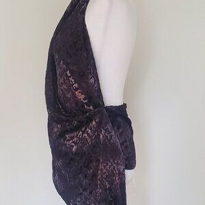 NEW ZARA Burnt Out Velvet Halter Top Blouse V Crossover Purple Silver Tones Boho