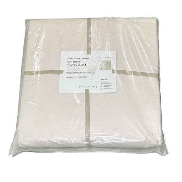 ZARA HOME QUEEN (180 THREAD COUNT) PERCALE FLAT SHEET Oyster-white