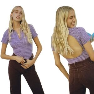 NEW ZARA Lilac Geometric Open-Back V-Neck Bodysuit Preppy Festival Retro XS