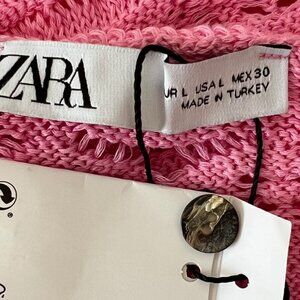 NEW ZARA Pink Cotton Knit Crochet Crop Top: Cottagecore Cardigan