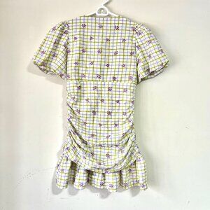 NEW ZARA Puffy Sleeve Check and Embroidered Floral Mini Dress, Size M