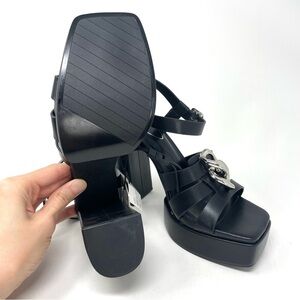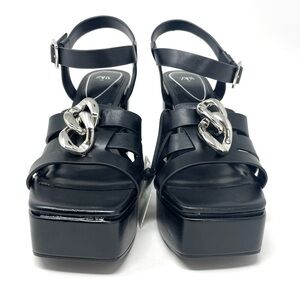NEW Zara Black Chain Detail Chunky High Heel Platform Sandals Size 38