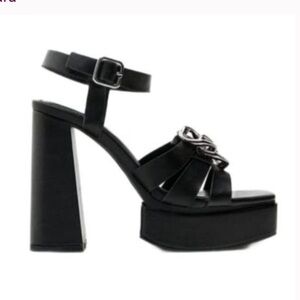Zara Black Chain Detail Chunky High Heel Platform Sandals