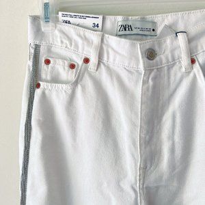 NEW! Zara High Waisted 90s Premium Cowboy Straight Leg White Jeans Denim - Sz 2