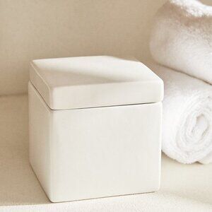 Zara Home 3 Piece WHITE EARTHENWARE JAR and DISH SET