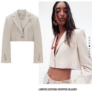 NEW Zara Limited Edition Linen Cropped Tweed Blazer Jacket, blogger Fav