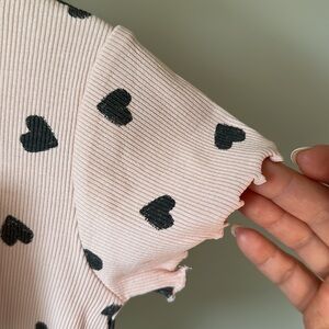 Brand new with tags Zara short sleeve ribbed t-shirt size 5 years. Stretchy material is so comfortable. Black heart print on a light pink background.