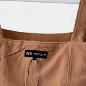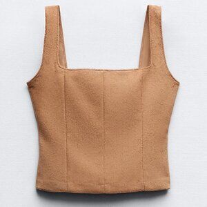 NEW Zara Soft Faux Fur, Wool Blend Bustier Corset-Style Cropped Top in Camel, XS