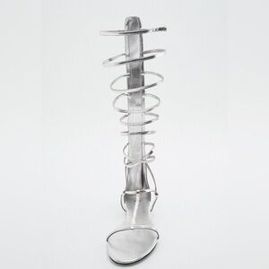 NEW Zara Tall Mid Calf Metallic Silver Gladiator Strappy Sandals 1615/010
