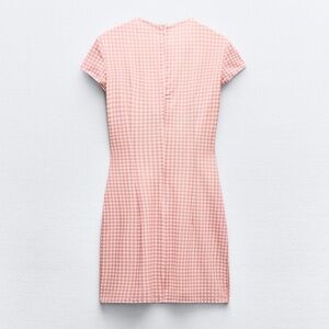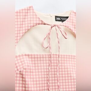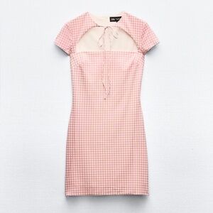 NEW Zara Tied White Pink Gingham Checkered Mini Dress XL L