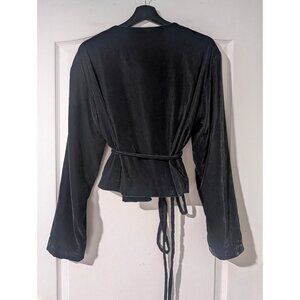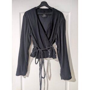 Long sleeve jacket with a crossover v-neck. Featuring an inner lining and a crossover tie fastening at the hem.