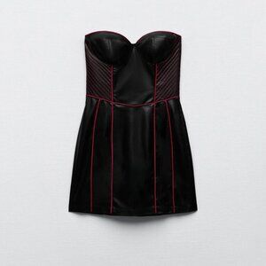 NEW Zara Women's FAUX LEATHER DRESS Black/Neon Pink