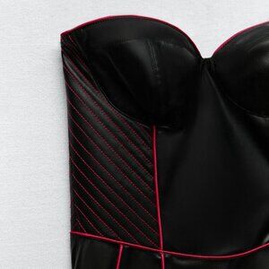 Zara Women's FAUX LEATHER DRESS Black/Neon Pink
