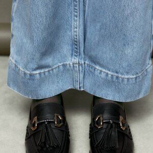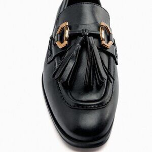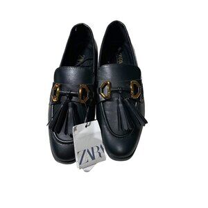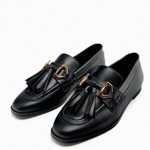 Zara Women's MOCASSIN WITH TASSEL Black/Gold Loafers