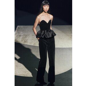 Strapless top with a sweetheart neckline and off-the-shoulder design. Featuring smocking on the back, a voluminous hem with matching fabric and concealed zip fastening at the back.