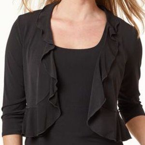 NEW cleo Black Ruffle-Sleeve Open Shrug, M