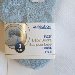 NEW collection london drugs 3-pack fuzzy baby boy socks 0-6 months