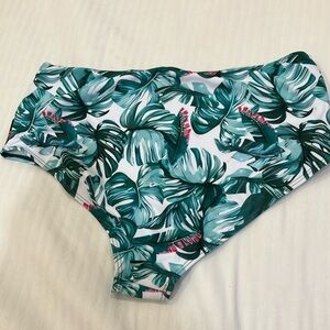 NEW large women’s Tropical Leaf Print high rise Bikini Bottoms