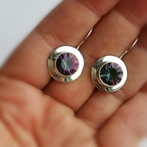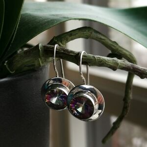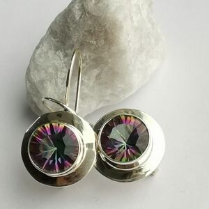 NEW, modernist sterling silver Mystic Topaz earrings