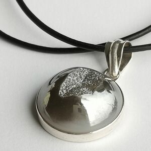 A druzy quartz stone pendant set in Sterling Silver, on brand new leather cord. Silvery grey colour.