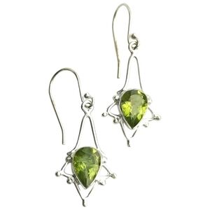 Dangle Earrings Sterling Silver with Teardrop Peridot.