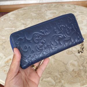 New, never used beautiful long zippered wallet in gorgeous blue embossed leather exterior (no tag but brought it to a professional leather tailoring/repair expert who confirmed it is lambskin).