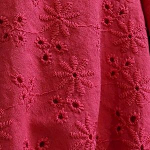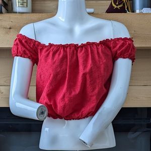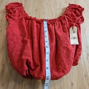 NEW Red Over the Shoulder Crop Top With Florets crochet Size Medium Eyelet Top