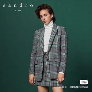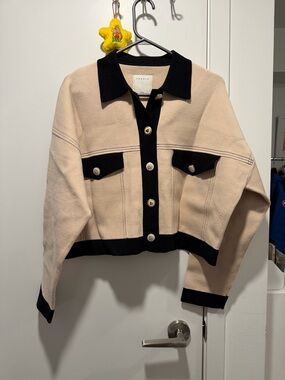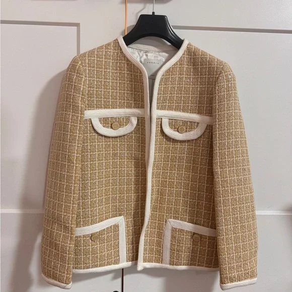 NEW-Sandro Tan Tweed Blazer with Cream Accents - Size 36 (US4)