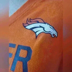 Denver Broncos orange tshirt. good condition. size large. made by nike with swoosh on the arm.