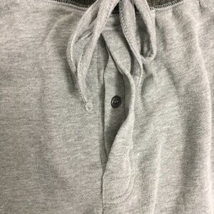 NFL Team Apparel Sleepwear Shorts. NY Jets. Men's Size XL. Cotton / polyester blend. Two tone grey / gray. Fleece sweat pant material. Single button fly. Elastic waist with drawstring. Side pockets. Super comfortable pyjama, leisure shorts.