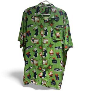 NFL SEATTLE SEAHAWKS Men's Christmas Shirt Button Down Casual Size XL Santa