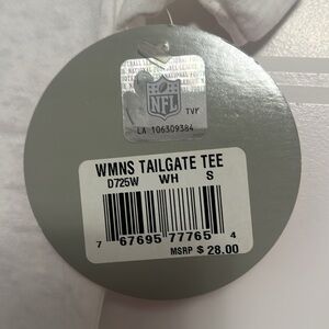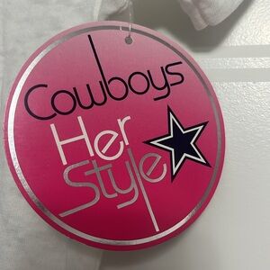 This NFL short sleeve tee showcases a striking graphic design in navy blue and gray on a crisp white background. Made from a soft cotton blend, it offers a comfortable fit and a stylish look. Perfect for casual outings or showing team spirit, this tee is a must-have for any fan. “Tailgate like a cowboy”