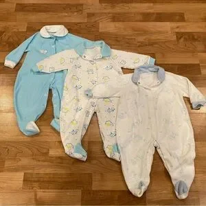 You are viewing a lot of 3 vintage baby sleepers. No tags. Run 12 m IMO. View photos for measurements. In gently used condition. No marks, stains or holes. Smoke free home.
