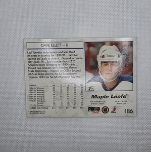 NHL 1992-93 Dave Ellett Toronto Maple Leafs #186 Pro Set Hockey Card - in excellent condition.