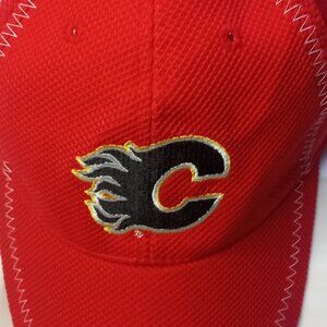 NHL Calgary Flames Hockey Cap Hat Flexfit 100% Poly mesh Red Molson Canadian
