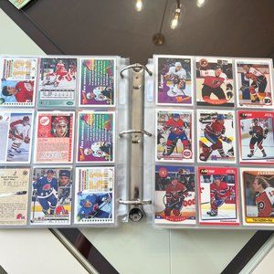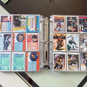 This collection of 1990, 1991, 1992, 1993 and 1994 NHL trading cards includes over 575 various non-duplicate cards placed in 66 9-Slot Sleeves, making it the perfect addition to any hockey fan's collection. Each card features a different player or team, showcasing the excitement and variety of ice hockey. These sports trading cards are in excellent condition! Whether you are a collector or a fan, these cards are a must-have for anyone who loves the sport of ice hockey. Don't miss out on this opportunity to own a piece of NHL history.