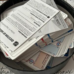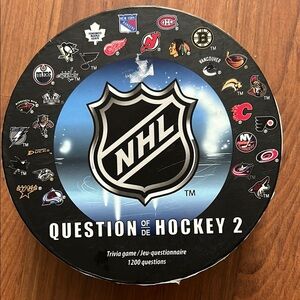 Challenge your hockey knowledge with the NHL Question of Hockey 2 Trivia Game. Featuring a sleek black and blue design, this game is perfect for fans of all ages. Test your skills with 1200 questions and enjoy hours of fun.