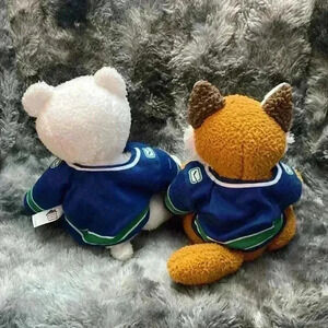NHL Vancouver Canucks Plush White Bear and Brown Fox Stuffed Animals with Jersey