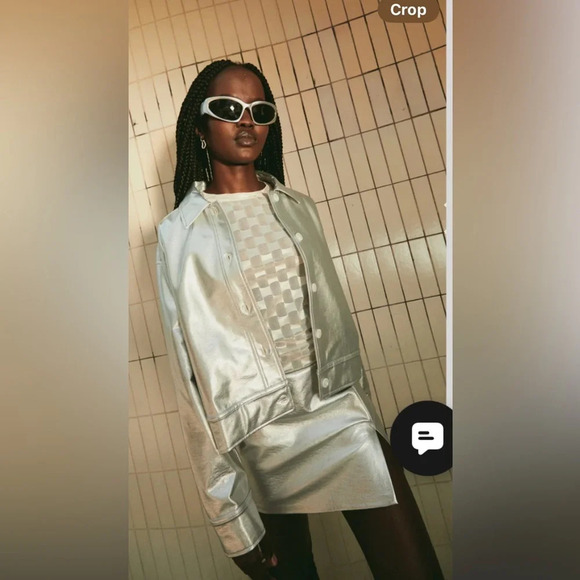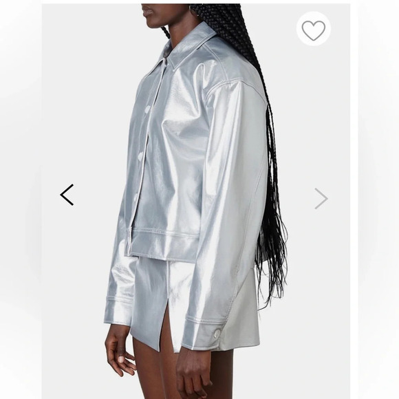 NIA VENUS JACKET Metallic Silver vegan leather size small Edgy Streatwear.