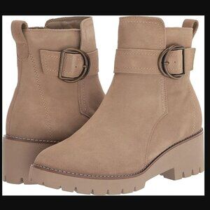 New in box, leather upper Blondo booties, size 5.5. The colour is a nice neutral beige, similar to my pics rather than the stock photos. Box got a little smushed in transit. Smoke free/pet friendly home. Thanks for your interest!