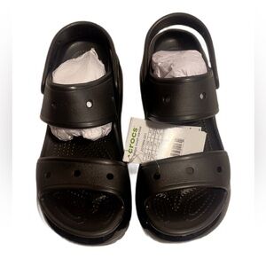 NIB Crocs Black Mega Crush Rubber Slip-on Open Toe trend logo Embossed Sandals 8