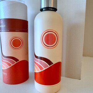 Make hydration beautiful with this double walled stainless steel water bottle. Juxtaposed upon a soft apricot background, gentle waves of sunlight spread heat and light of warm hues over the earth. Keep cool liquids cold for 24 hours and hot liquids hot for 12 hours.
