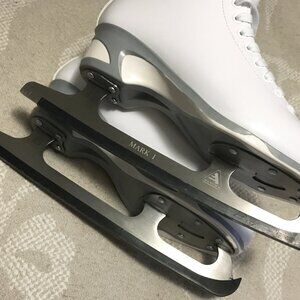 Excellent unworn condition, white, Jackson Cameo 1500 fleece-lined, figure senior ice skates. Gorgeous skates, still have the blade guards. The box is a little worn, but it has not affected the quality or condition of the skates themselves. There's a mark on the toe of the right skate, but I'm certain it can be washed up. I might just do that in the meantime.