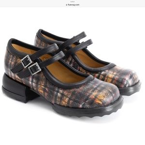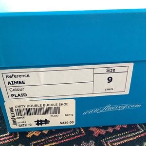 New in box John Fluevog Unity Aimee plaid double strap mary-janes size 9. Ordered from Ottawa Fluevog shop for $384 total.