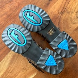 A very comfortable Fluevog classic with its own fandom. I am in love with the design but I wear mostly jewel colours and haven’t reached for these, other than to admire them 😍. I have long toes and take an 8.5 in most Fluevogs; as per store fitting advice I ordered a 9 and these fit well, with some room for a thin sock. Sturdy rubber soles and heels. The straps can be crossed to change the look. I’ve kept the straps unbuckled to not create permanent indentations from storage.