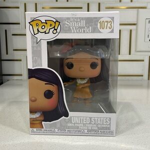 New in box Funko Pop It’s a Small World United States vinyl figure. Box shows wear on top corner and bottom. Please see photos.