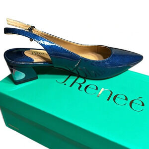 NIB J.Renee shoes,women Slingback,Shayenne NavyPearl,chunky heel,glam,prom,shine