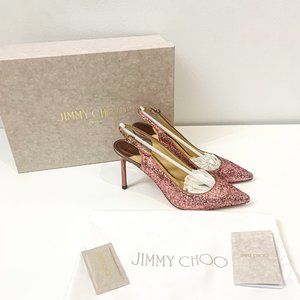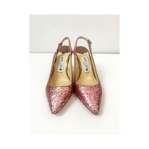 NIB Jimmy Choo Erin 85 Slingback Pumps Pink Glitter EU35.5 US5.5 $900. Comes with box and dust bag. Small scuff on the side of shoe as seen in photo.