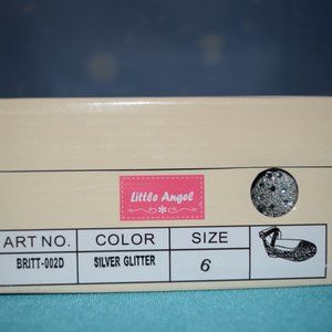 NIB ~ Little Angel Silver Glitter Britt Ankle Strap Flat Toddler 6