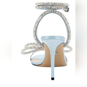 Selling NIB MACH & MACH | Double Bow Round Toe Satin Sandals Heels Pumps Blue Sz 10B. Authenticated by Poshmark. New.